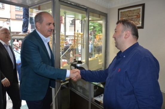 Numan Kurtulmuş, Fatsa'da esnaf ziyaretinde bulunarak destek istedi. Fatsalıları dinleyen Kurtulmuş, programına Perşembe'deki miting için ara verdi.