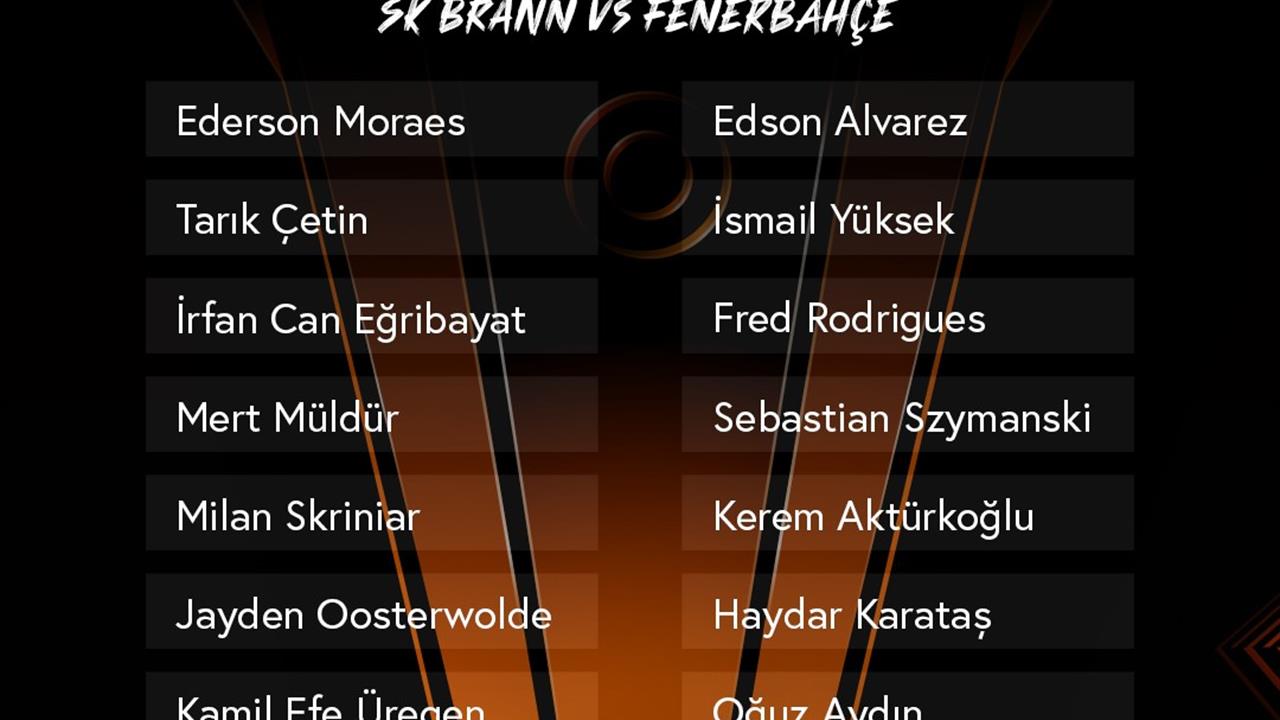 Fenerbahçe'nin UEFA Avrupa Ligi 6. haftasında yarın TSİ 23.00'te Brann ile yapacağı maç için oluşturduğu kamp kadrosu belli oldu. 20 kişilik kadroda, Ederson Moraes, Tarık Çetin, İrfan Can Eğribayat, Mert Müldür, Milan Skriniar, Jayden Oosterwolde, Kamil Efe Üregen, Yiğit Efe Demir, Archie Brown, Levent Mercan, Edson Alvarez, İsmail Yüksek, Fred Rodrigues, Sebastian Szymanski, Kerem Aktürkoğlu, Haydar Karataş, Oğuz Aydın, Dorgeles Nene, Anderson Talisca ve Youssef En-Nesyri yer aldı. Öte yandan, kırmızı kart cezası nedeniyle Jhon Duran, sakatlıkları bulunan Çağlar Söyüncü ve Nelson Semedo kadroda yok. Ayrıca, Marco Asensio'nun yaşadığı ağrılar nedeniyle riske edilmediği ve Norveç'e götürülmediği bildirildi.