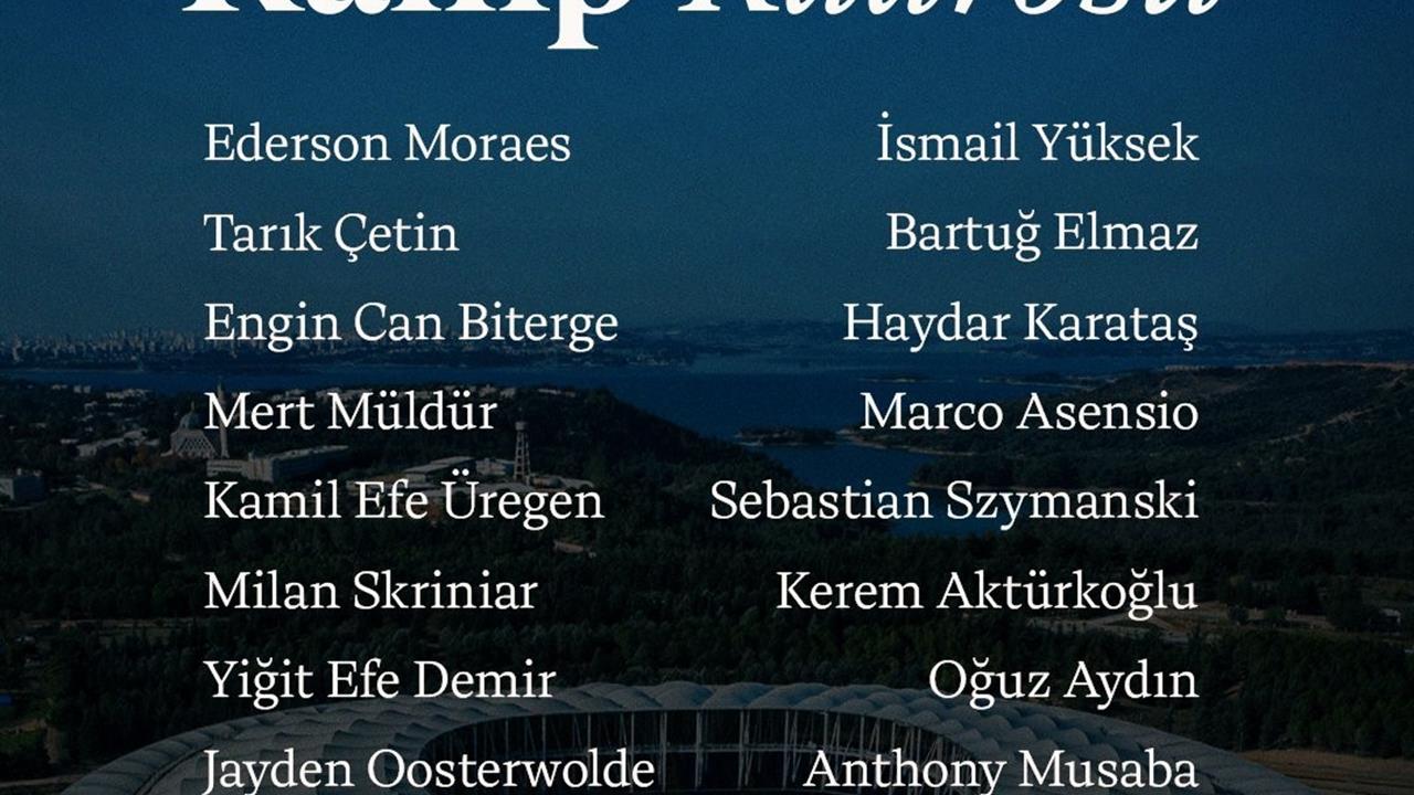 Fenerbahçe’nin 19 kişilik kamp kadrosu ise şu isimlerden oluşuyor: Ederson Moraes, Tarık Çetin, Engin Can Biterge, Mert Müldür, Kamil Efe Üregen, Milan Skriniar, Yiğit Efe Demir, Jayden Oosterwolde, Çağlar Söyüncü, Levent Mercan, İsmail Yüksek, Bartuğ Elmaz, Haydar Karataş, Marco Asensio, Sebastian Szymanski, Kerem Aktürkoğlu, Oğuz Aydın, Anthony Musaba, Jhon Duran.Bu kadro ile Fenerbahçe, Samsunspor karşısında iddialı bir performans sergilemeyi hedefliyor. Takımın teknik ekibi, oyuncuların hazırlık sürecini titizlikle yürüttü ve Adana'da iyi bir sonuç almak için tüm hazırlıkları tamamladı. Fenerbahçe taraftarları, takımlarının sahada göstereceği performansı merakla bekliyor.