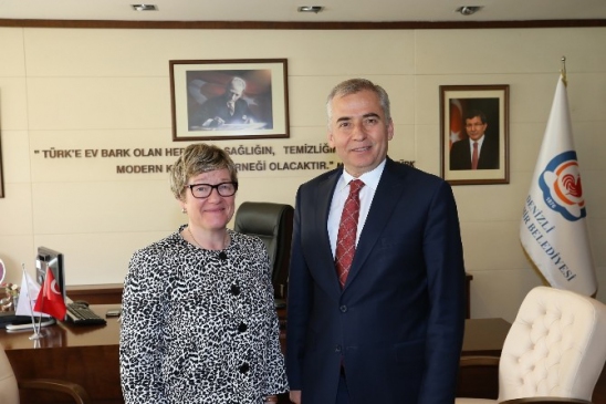 Finlandiya'nın Ankara Büyükelçisi Nina Vaskunlahti, Denizli İhracatçılar Birliği'nin daveti üzerine Denizli'yi ziyaret etti. Büyükelçi Vaskunlahti, Denizli Büyükşehir Belediye Başkanı Osman Zolan'ı makamında ziyaret ederek, çeşitli temaslarda bulunacaklarını belirtti. Ziyarete, DENİB Başkanı Süleyman Kocasert, Yönetim Kurulu Üyesi İsa Dal ve Büyükelçilik İkinci Katibi Anna Huovila da katıldı. Vaskunlahti, Denizli'yi çok sevdiklerini ifade ederek, sosyal, kültürel ve ekonomik işbirliğini geliştirme arzusunu dile getirdi. Başkan Zolan ise, Büyükelçi'yi ağırlamaktan memnuniyet duyduğunu ve kentin son yıllardaki gelişiminden bahsetti. Ayrıca, Denizli'nin tarihi ve kültürel değerleri ile Büyükşehir Belediyesi'nin sunduğu modern hizmetler hakkında bilgiler verdi.