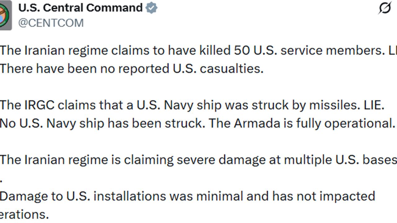 ABD ordusunun İran ile ilgili kayıplara dair yaptığı resmi açıklamada, ABD Merkez Komutanlığı (CENTCOM) tarafından, İran rejiminin 50 ABD askerini öldürdüğüne dair iddiaların tamamen asılsız olduğu belirtildi. Açıklamada, "ABD’de herhangi bir kayıp bildirilmemiştir" ifadesi yer aldı. Ayrıca, İran Devrim Muhafızları'nın bir ABD donanma gemisinin füzelerle vurulduğunu iddia ettiği dile getirilirken, "Hiçbir ABD donanma gemisi vurulmamıştır. Donanma tamamen faal durumdadır" denildi. Çeşitli ABD üslerinde ciddi hasar olduğu yönündeki söylenenlerin de gerçeği yansıtmadığı ifade edilerek, "ABD tesislerindeki hasar minimaldir ve operasyonları etkilememiştir" açıklaması yapıldı.