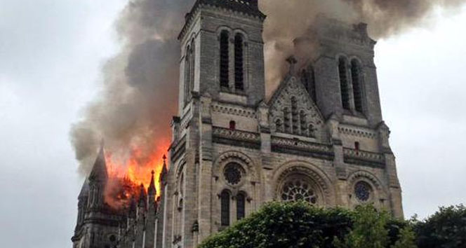 Yangın, Fransa'nın batısındaki Nantes kentinde, Aziz Donatien bazilikasının çatı katında henüz belirlenemeyen bir nedenle meydana geldi. Bugün yapılan ayinin ardından, yangın nedeniyle bazilikada bulunan vatandaşlar hızlı bir şekilde tahliye edildi. Olay yerine gelen yaklaşık 40 itfaiye eri, yangını kontrol altına almak için yoğun bir şekilde müdahale etti. Yangının, bazilikanın çatısında yürütülen çalışmalar sırasında çıktığı düşünülüyor. Yangın sırasında bazilikada çalışan 2 işçi, çatıdan kaçarak yaralanmadan kurtuldu. Yangın sonucu bazilikanın çatısında maddi hasar oluşurken, içerideki değerli eserler koruma altına alındı.