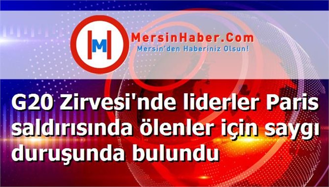 ANTALYA - Türkiye'nin ev sahipliğinde Antalya'da yapılan G20 Zirvesi'ne katılan liderler, Fransa'nın başkenti Paris'te meydana gelen terör saldırılarında hayatını kaybedenler için bir dakikalık saygı duruşunda bulundu. Paris'teki terör saldırısında 128 kişi hayatını kaybetmişti. CİHAN