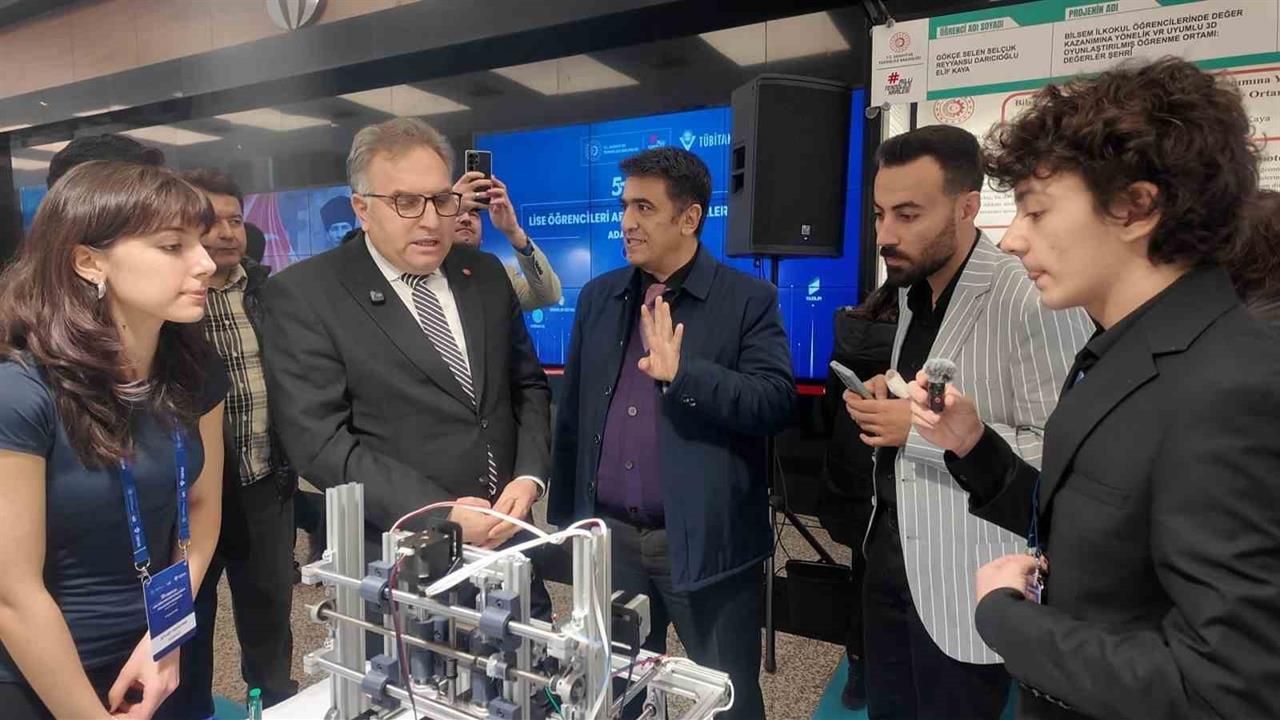 Şehitkamil Milli Eğitim Müdürü Mehmet Ali Tiryakioğlu, yarışmada sergilenen projeleri ziyaret ederek, GKV Özel Okulları Genel Müdürü Fevzi Gürsel’den projeler ve yarışma hakkında bilgi aldı.