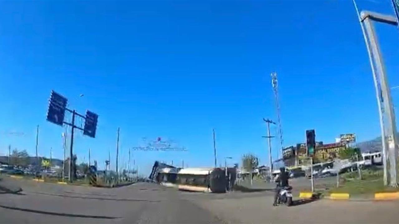 Kaza anı, kavşakta bulunan başka bir aracın güvenlik kamerasına yansıdı. Kayıtlar incelendiğinde, tırın dönüş yapmaya çalıştığı esnada bir anda kontrolden çıkarak devrildiği ve çevreyi toz bulutuyla kapladığı görüldü.