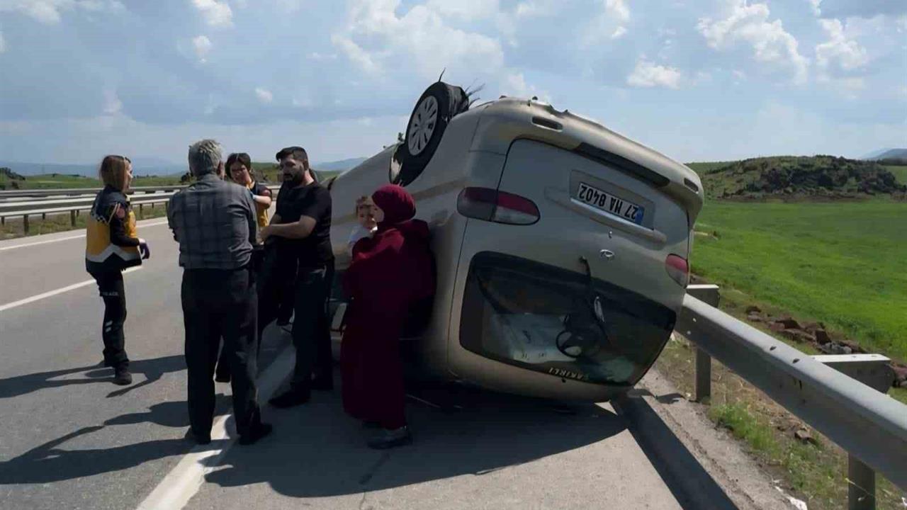 Gaziantep'te lastiği patlayan minibüs, takla atarak devrildi ancak içindeki üç kişi yaralanmadan kurtuldu.