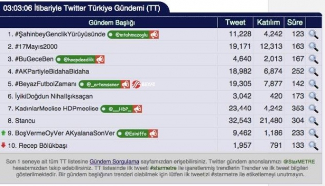 Gaziantep’in merkez Şahinbey ilçesinde Türkiye’nin en büyük parkı olan Yeşilvadi’de düzenlenen Gençlik Yürüyüşü, 50 bin kişinin katılımıyla gerçekleşti. Şahinbey Belediye Başkanı Mehmet Tahmazoğlu, etkinlik öncesinde Twitter’da #ŞahinbeyGençlikYürüyüşü hashtag’ini başlattı. Yürüyüş sonrası Türkiye’nin en büyük amfi tiyatrosunda sanatçı Mustafa Ceceli’nin verdiği konser, etkinliğe katılanların sosyal medyada yoğun paylaşımlar yapmasına neden oldu. Bu durum, #ŞahinbeyGençlikYürüyüşü etiketinin önce Türkiye gündeminde, ardından da Dünya gündeminde TT (Trend Topic) olmasını sağladı. Söz konusu hashtag, Türkiye gündeminde 1. sıraya, dünya gündeminde ise 6. sıraya yükseldi.