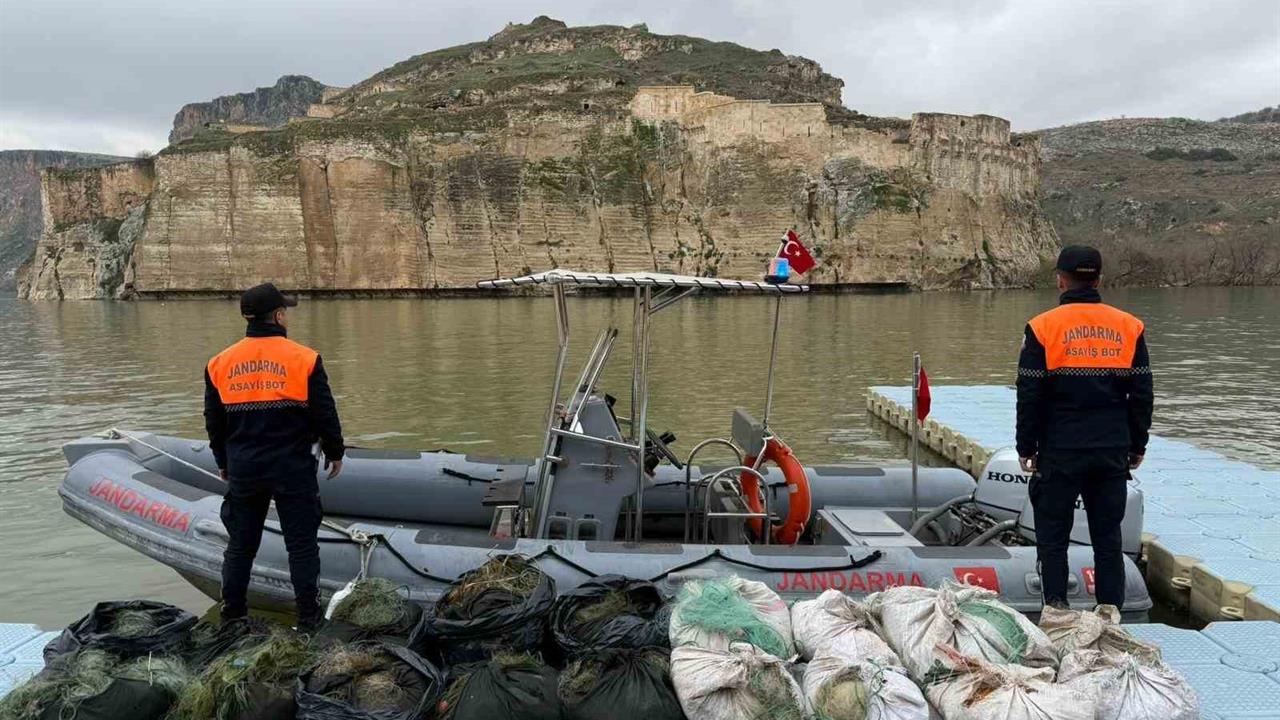 Gaziantep İl Jandarma Komutanlığı Asayiş Bot Timleri, Yavuzeli ilçesi Fırat Nehri üzerinde önleyici devriye görevi icra etti. Bu sırada, nehirde avlanma yasağı olmasına rağmen ağ atarak balık avlayan H.S. ve V.A. isimli şahıslar tespit edilerek suçüstü yakalandı. Yapılan incelemelerde, yakalanan şahıslara ait olduğu belirlenen 3 bin metre uzunluğunda ağ ele geçirildi.