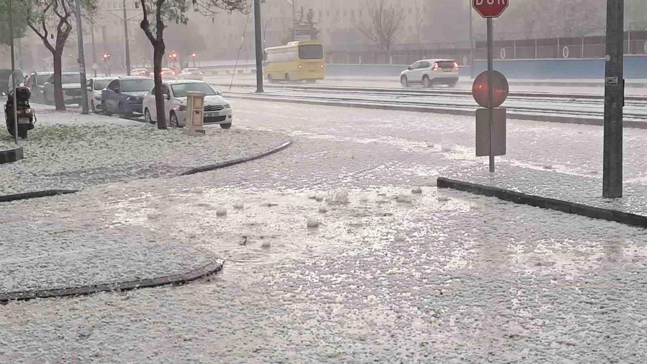 Gaziantep’te yaklaşık yarım saat etkili olan ceviz büyüklüğünde dolu yağışı hayatı felç etti.