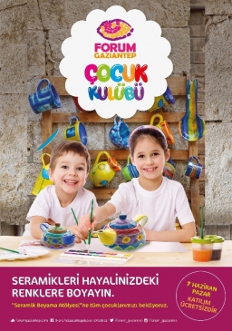 Forum Gaziantep Çocuk Kulübü, her ayın ilk pazar günü gerçekleştirdiği etkinliklere Haziran ayında 'Seramik Boyama Atölyesi' ile devam ediyor. 7 Haziran Pazar günü düzenlenecek atölyede, çocuklar rengarenk boyayacakları seramikler ile hem eğlenecek hem de el becerilerini geliştirme fırsatı bulacaklar. Bu etkinlik, çocukların yazın ilk günlerini eğlenceli ve unutulmaz kılmayı hedefliyor.