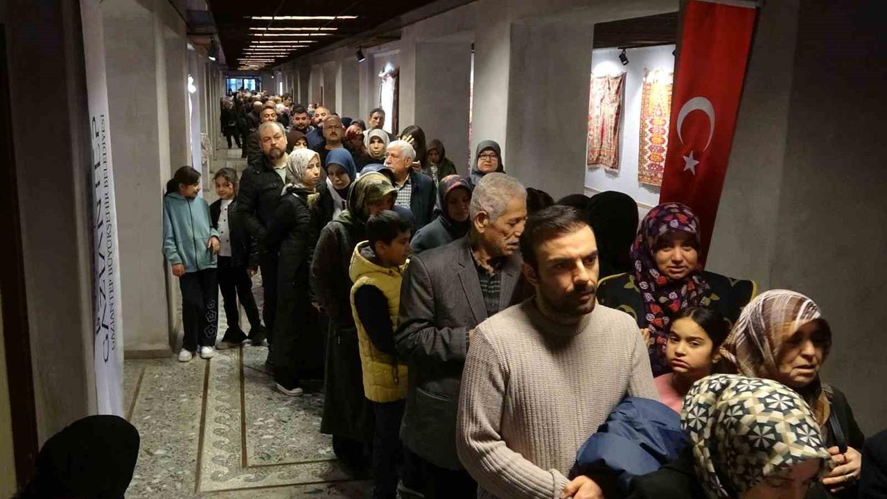 Peygamber Efendimize ait Lihyei Saadet (Sakalı Şerif ve Saçı Şerif), Hücrei Saadet’te bulunan kabir örtüsü ve kabir toprağı, hurma lifinden yapılmış yatağı, Kademi Şerif (ayak izi), Gubarı Şerif (kabir toprağı) ve Kisvei Saadet gibi pek çok kıymetli emanetin yer aldığı sergi ilgi görmeye devam ediyor. Uzun kuyrukların oluştuğu sergide duygu dolu anlar yaşandı. Kutsal emanetleri yakından görme fırsatı bulan vatandaşlar, o anları cep telefonu ile görüntüledi.