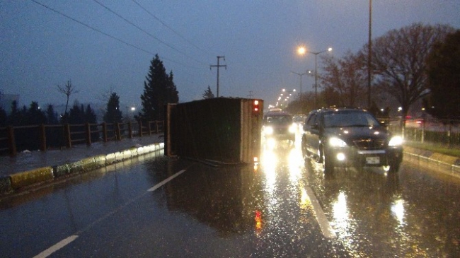 Gaziantep'te, Sani Konukoğlu Bulvarı'nda Seugma Müzesi önünde meydana gelen kazada, Hanifi Başaran yönetimindeki 27 EU 503 plakalı kamyonet, kaygan zemin nedeniyle sol bariyerlere çarparak yan yattı. Edinilen bilgilere göre, sürücü ve yanında bulunan bir kişi kazadan yara almadan kurtulmayı başardı. Olay sonrası yan yatan kamyonet nedeniyle trafikte aksamalar yaşandı. Trafik polisleri, kazanın ardından trafiğin düzenli akmasını sağlamak için yoğun bir çaba sarf etti.