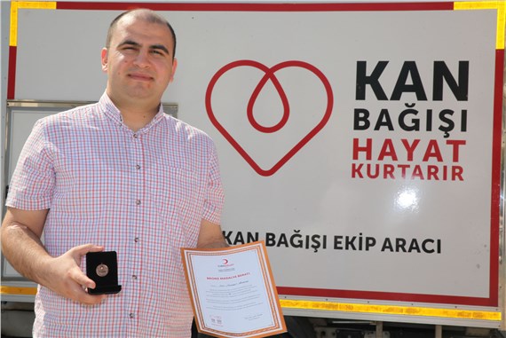 İZMİR - Gediz Üniversitesi öğrencisi Hacı Mehmet Boyraz, Kızılay’ın rekortmen kan bağışçılarından. Geçirdiği bir rahatsızlık sırasında bağışın yetersizliğini görünce düzenli olarak kan vermeye başladı. Kızılay da bu duyarlılığından dolayı madalyayla teşekkür edip onu topluma örnek gösterdi.