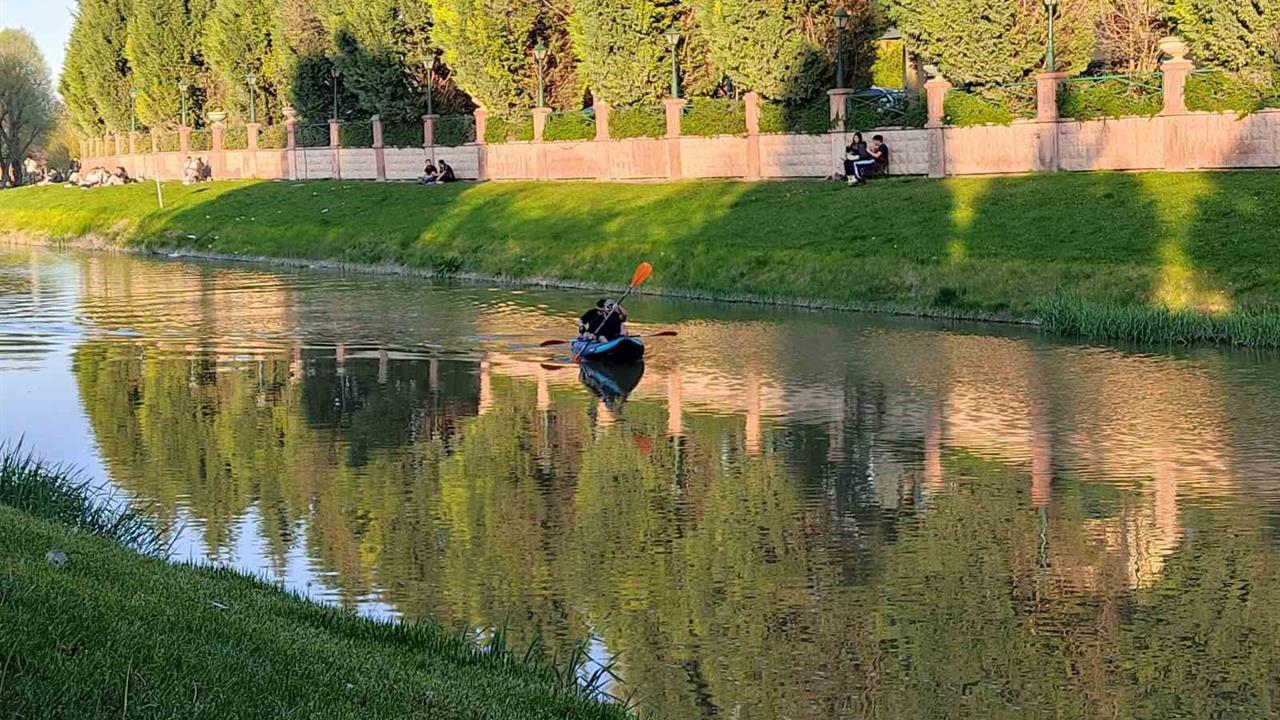 Eskişehir’in Odunpazarı ilçesinde bulunan ve eşsiz doğasıyla bilinen Kanlıkavak Parkı’nda iskeleden kanolarıyla suya açılan iki genç, Porsuk Çayı boyunca kürek çekerek keyifli anlar yaşadı.
