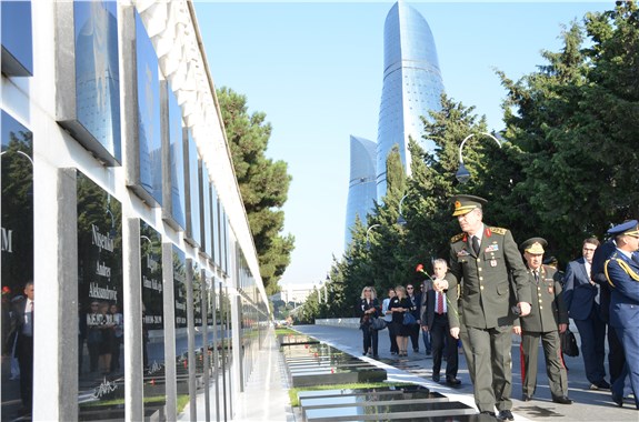 BAKÜ - Resmi temaslarda bulunmak üzere dün Bakü'ye gelen Genelkurmay Başkanı Hulusi Akar, Azerbaycan ve Türk Şehitliği'ni ziyaret etti. Ülkenin merhum lideri Haydar Aliyev'in mezarına çelen bırakan Hulusi Akar, ardından 20 Ocak Şehitleri'nin bulunduğu Şehitler Hıyabanı'na giderek şehitlerin kabirlerine karanfiller bıraktı.