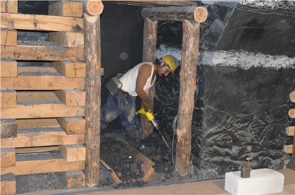 İhale şartnamesi gereği yeraltındaki ortamda çalışan 3 temel işçiyi bire bir fotoğraflandırarak, canlandırma yoluna gittiklerini anlatan Zaman, sözlerini şöyle tamamladı: “Biz şartnamede 3 temel işçi belirledik. Birincisi kömür yüklü vagonu eliyle itecek işçi, ikincisi martoperforatörle bir arında, hazırlık galerisi veya taban yolunda delik delen bir hazırlık işçisini vermek istedik. Çünkü hazırlıkla kömüre gidersiniz. Kömür damarı da yanımızda, gördüğünüz gibi bir ayak yaptık. Canlandırma alanında ayağa da bir kazmacıyı koyduk. Kazmacının duruş şeklini de fotoğraf ve filmini çektik. Hazırlık işçisinin de elle vagona dayanan işçinin fotoğraf ve filmlerini ocakta çektik. Biz bu fotoğraf ve filmleri gönderdiğimiz şekliyle bunlar yapıldı. Belki bu Ahmet’e birebir benzememiş olabilir; ama sonuçta bunların gerçekten normal boyutta bir maden işçisi olduğunu ve hiçbir eksikliğinin olmadığını görüyoruz. Yerinde duruşları da yerinde çalışırken de böyle çalışıyorlar. Bunların malzemesi balmumu ya da mumya değil. Bunlar çabuk deforme olacak malzeme değil, polyester veya petrol türü şeyler. Plastik veya lastik türü şeyler. İnsan yapıldıktan sonra sanırım üstüne giydiriliyor, saçıyla, kılıyla her şeyiyle bunlar oluşturuluyor. Baktığınız zaman bir insan görünümü olduğunu görüyorsunuz.” CİHAN