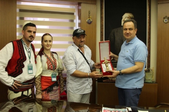 Giresun Merkez'de düzenlenen 38. Uluslararası Aksu Festivali'ne katılan yabancı ekipler, Belediye Başkanı Kerim Aksu'yu makamında ziyaret etti.