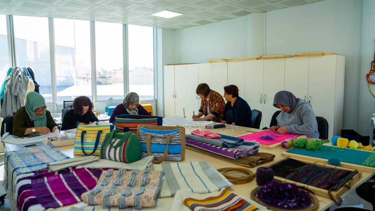 Elde edilen iplikler, Zübeyde Hanım Aile Yaşam Merkezi'nde uzman eğitmenler eşliğinde kursiyerlerin eline verilmektedir. Geleneksel dokuma teknikleriyle tezgahlarda işlenen bu iplikler, kursiyerlerin özverili çalışmalarıyla yeniden hayat bulmakta, estetik ve işlevsel ürünler ortaya çıkmaktadır. Bu uygulama sayesinde, atıkların geri dönüşümü sağlanmakta ve çevreye duyarlı bir yaklaşım benimsenmektedir.