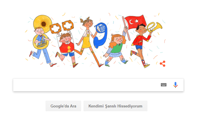 Bu gün kü google logosuna tıklayanları ise, 23 Nisan Çocuk Bayramı ile ilgili haberler ve bilgiler karşılarına çıkıyor.