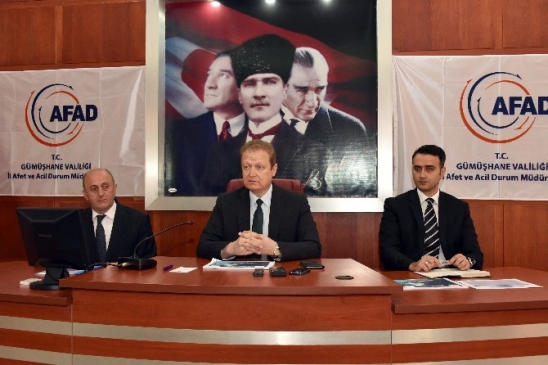 Gümüşhane'de, İl Afet Müdahale Planı'nın onay aşamasına gelmesi dolayısıyla bir tatbikat düzenlendi. Valilik toplantı salonunda gerçekleştirilen organizasyona Gümüşhane Valisi Yücel Yavuz, Vali Yardımcısı İsmail Özkan ve İl Afet ve Acil Durum Müdürü Mesut Bayrak'ın yanı sıra çevre illerden kamu kurumlarının temsilcileri de katıldı. Tatbikat öncesinde konuşan Vali Yavuz, son dönemlerde yapılan düzenlemelerin ardından afet müdahale planlarının daha etkin hale getirildiğini belirtti. Ardından tatbikatta, Erzincan'da meydana gelen 7,9 büyüklüğündeki deprem senaryosu ele alındı. Tatbikat, iletişim kesintileri, ölü ve yaralı sayısının bilinmediği, yangınların çıktığı, elektriklerin kesildiği ve karayollarının kapandığı bir durum üzerinden yaklaşık iki saat sürdü. Katılımcılar, bu senaryo çerçevesinde koordinasyonun nasıl sağlanacağı üzerine çalışmalar yaptı.