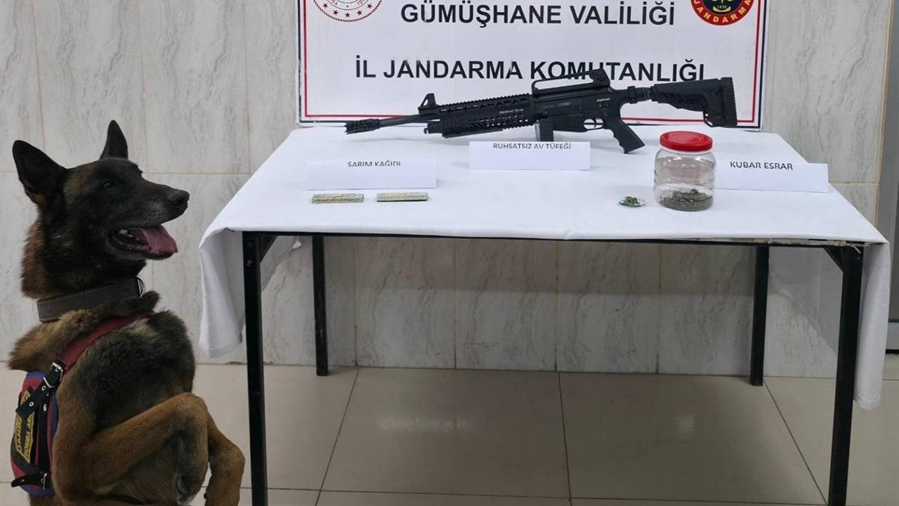 Gümüşhane İl Jandarma Komutanlığına bağlı Kürtün İlçe Jandarma Komutanlığı ekipleri, S.K. isimli şahsın evinde uyuşturucu madde bulundurduğu bilgisini aldı. Bu doğrultuda, Kürtün ilçesi Taşlıca köyünde yer alan adrese yönelik olarak adli arama kararı alındı. Yapılan arama neticesinde, 1 adet ruhsatsız av tüfeği, 1 adet av tüfeği şarjörü, 8 gram kubar esrar ve 2 adet sarım kağıdı ele geçirildi ve muhafaza altına alındı.