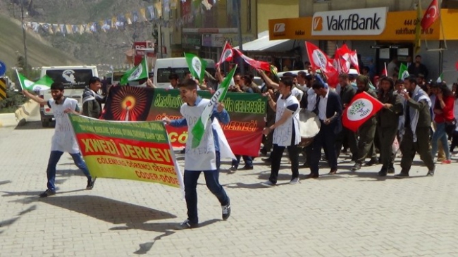 Hakkari Merkez'de düzenlenen HDP ile dayanışma konserine yüzlerce öğrenci katıldı. Öğrenciler, etkinlik öncesi yürüyüş yaparak HDP bayrakları ile konser alanını süslediler.