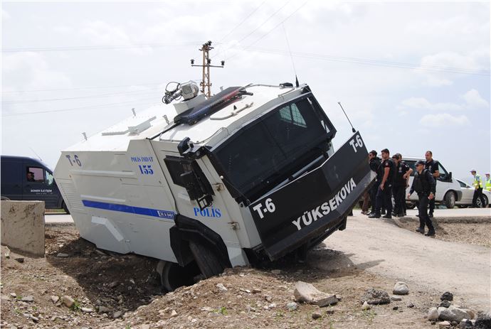 Hakkari'nin Yüksekova ilçesinde, Cumhurbaşkanı Tayyip Erdoğan ile Başbakan Ahmet Davutoğlu'nun ziyareti sebebiyle sıkı güvenlik önlemleri alındı. Bu kapsamda, havaalanı bölgesinde güvenlik sağlamak amacıyla görev yapan bir TOMA aracı, köy yoluna saparken dönüş alamayarak şarampole yuvarlandı. Olayda, TOMA'nın içindeki polisler yara almadan kurtuldu. Güvenlik güçleri, kaza sonrası bölgedeki önlemleri sürdürmeye devam etti.