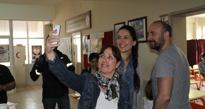Halit Ergenç, oy pusulasının bulunduğu zarfı sandığa atma isteğini oğlu Ali’ye iletti. Ali, babasının oy zarfını 1296 numaralı sandığa attı. Bergüzar Korel de oyunu kullandıktan sonra sandık görevlileriyle hatıra fotoğrafı çektirdi.