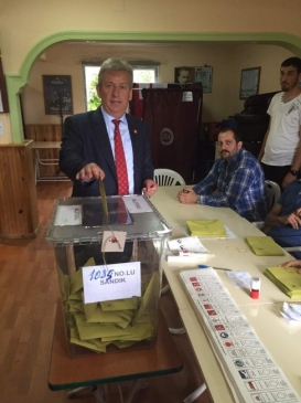 CHP Trabzon Milletvekili adayı Avukat Haluk Pekşen, doğup büyüdüğü Yomra ilçesindeki köyünde oyunu kullandı.