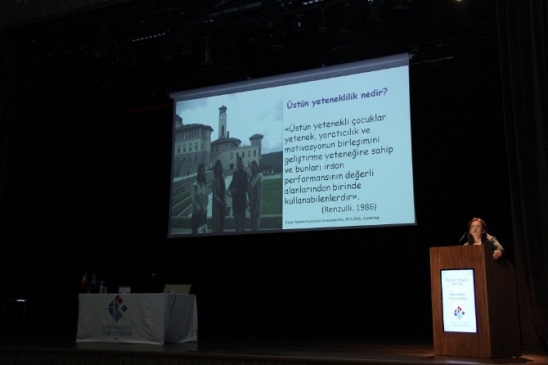 Lefke Avrupa Üniversitesi’nden Prof. Dr. Ayşegül Ataman da “Üstün yetenekli çocukların aileleriyle çalışmalar” konulu bir sunum gerçekleştirdi. Ailelere yönelik uyarılarda bulunan Ataman, “Çocuklarınıza tutamayacağınız sözler vermekten kaçının, çünkü çocuklar böyle sözleri unutmaz” dedi.