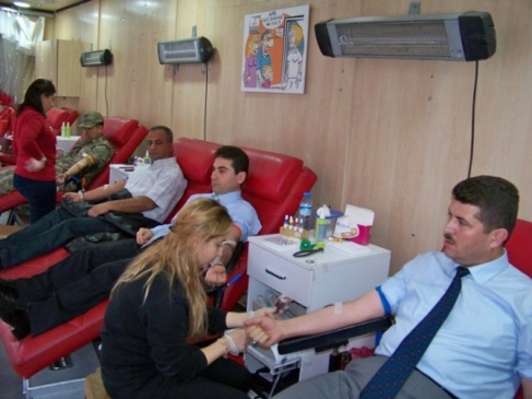 Hatay’ın Hassa ilçesinde Kızılay, 15 Kasım Parkı önünde kan bağışı kampanyası düzenledi. Kampanyayı ziyaret eden Hassa Kaymakamı Mustafa Pala ve Belediye Başkanı Abdurrahman Demirel, kan bağışında bulunarak destek verdiler. Kan bağışı çadırında, kurum amirleri, serbest meslek sahipleri, askerler, imamlar ve muhtarlar da yer aldı. Kızılay yetkilileri, ilçenin 2 ayda bir gezici kan alma aracı ile ziyaret edildiğini belirtti. Ayrıca, çeşitli kurum ve meslek kuruluşlarının destekleri ile duyarlılık gösteren halkın katılımından memnuniyet duyduklarını ifade ettiler.