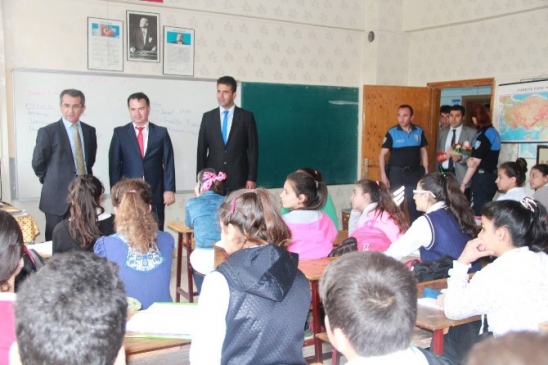 Hatay'da Emniyet Müdürü Ali Doğan Uludağ, öğrencilerin davetiyle Odabaşı 75. Yıl Ortaokulu'nu ziyaret etti.