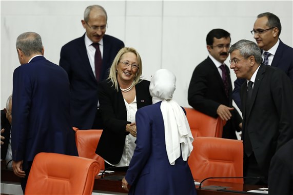 ANKARA - Türkiye Büyük Millet Meclisi (TBMM) Genel Kurulu, 25. Dönem 2. Yasama Yılı açılışı için toplandı. Cumhurbaşkanı Recep Tayyip Erdoğan'ın konuşmasının ardından sıra seçim kabinesine dışarıdan atanan bakanların yemin etmesine geldi. Ancak CHP Grup Başkanvekili Levent Gök, bakanların yemin etmeden Erdoğan'ın konuşmasını Meclis Genel Kurulu'nda dinleyemeyeceklerini savundu. Bunun üzerine usül tartışması yapıldı.