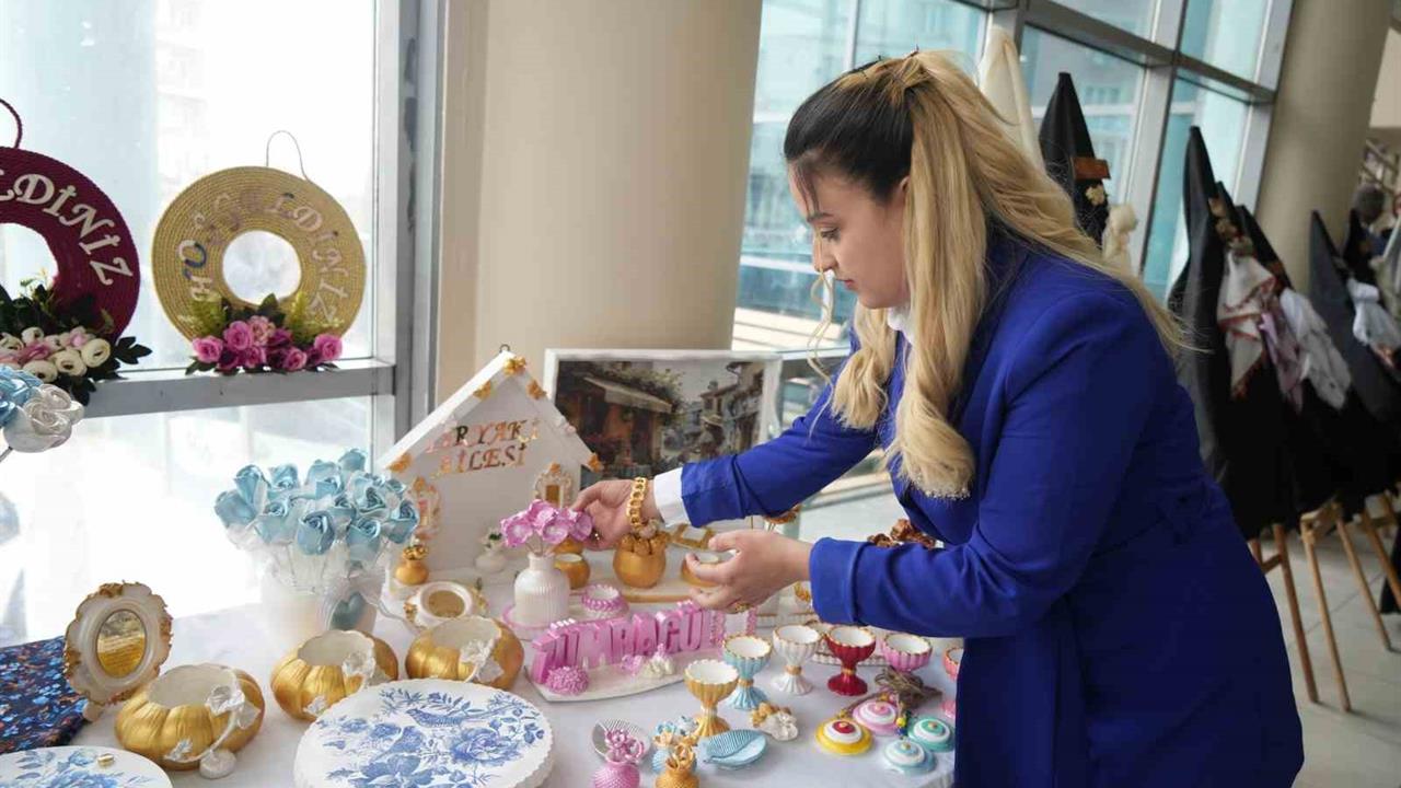 Usta öğretici Zeynep Tiryaki, sergide yer alan ürünlerin büyük bir emekle hazırlandığını ifade ederek, "Bugün 8 Mart Dünya Kadınlar Günü. Hepimizin günü kutlu olsun. Ürünlerimizi kadınlarımızla birlikte büyük bir özveri ile hazırladık. Kadınların zarafetini ve emeğini yansıtan eserler ortaya çıkardık. Kokulu taş sanatıyla hazırlanan ürünler, özel malzemelerin birleşimiyle oluşturuluyor ve ardından boyanıp süslenerek son haline getiriliyor. Kadınlarımızın emeğine sağlık. Bazı kadınlarımız bu ürünleri satarak aile bütçesine katkı sağlıyor" dedi.