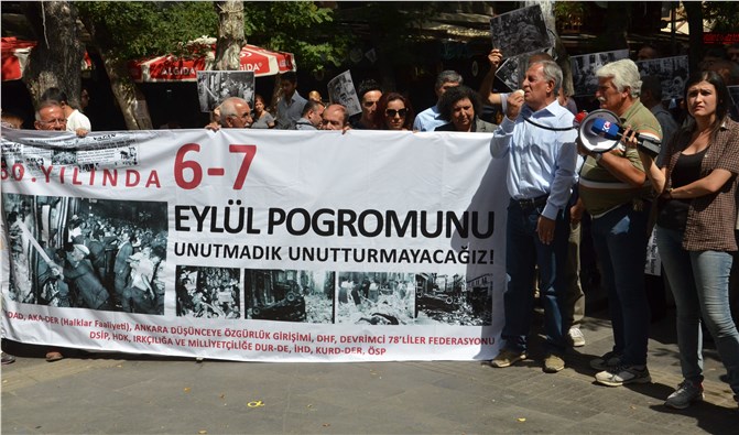 ANKARA - İnsan Hakları Derneği (İHD) Ankara Şube Yönetim Kurulu Üyesi Mahmut Konuk, 60 yıl önce yaşanan 6-7 Eylül’de yaşanan olaylara tepki gösterdi. Konuk, "6-7 Eylül olaylarını unutmadık, unutturmayacağız.” dedi.