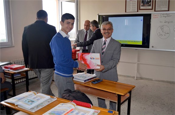 BURSA - Karacabey Kaymakamı Dr. Yusuf Gökhan Yolcu, imam hatip ortaokulunun devam eden inşaatını inceledi, İmam Hatip Lisesi öğretmen ve öğrencilerine tablet dağıttı.