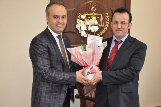 İnegöl Belediye Başkanı Alinur Aktaş, ilçeye yeni atanan hakim ve savcılara hayırlı olsun dileklerini iletmek amacıyla ziyaret gerçekleştirdi. İnegöl Adliyesi'nde göreve başlayan cumhuriyet savcıları Uğur Ali Pekgöz ve Abdullah Keltaş ile hakimler Cahit Gülnar, Enver Akman, Mustafa Duran ve Kasım Turgut Turan'ı ziyaret eden Aktaş, İnegöl'ün sürekli büyüdüğünü ve geliştiğini ifade etti. Başkan Aktaş, bu gelişmelere rağmen bazı sıkıntıların da yaşandığını belirterek, "Adliyemiz, emniyetimiz ve jandarmamız bu meseleleri çözüme kavuşturuyor. Umarım şehrimizde olumsuzluklar yaşanmaz ve her şey huzur içinde ilerler," dedi. Ziyaret sırasında Aktaş, hakim ve savcılara çiçek takdim etti.