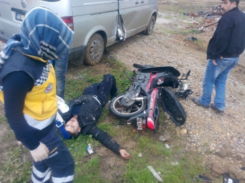 Bursa'nın İnegöl ilçesinde Cerrah kavşağında minibüsle çarpışan motosiklet sürücüsü Bilal Aydın yaralandı. 16 KLD 34 plakalı motosiklet, yan yoldan çevre yoluna çıkan Bünyamin Alp'in kullandığı 16 Y 6961 plakalı minibüsle çarpıştı. Çarpmanın etkisiyle motosiklet yoldan çıkarak devrildi. Olay yerine gelen 112 Acil Servis ekipleri, yaralı genç Aydın'a ilk müdahaleyi yaptıktan sonra, sağlık durumu iyi olan Aydın'ı İnegöl Devlet Hastanesi'ne sevk etti. Kazanın ardından olayla ilgili soruşturma başlatıldı.