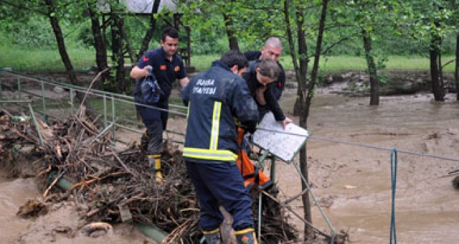 Ayhan Huz, piknik için geldiklerini belirterek, “Derenin köprüsünden geçip pikniğimize başladık. Diğer aileler erkenden ayrıldı. Ancak biz yağmurun bu kadar şiddetli olacağını düşünmemiştik. Derenin yükselmesiyle mahsur kaldık. Bekçi bize yardım etti ve itfaiye ekipleri de imdadımıza koştu. Çok teşekkür ederiz” dedi.