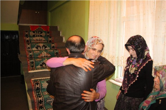 ZONGULDAK - Irak'ın başkenti Bağdat'ta kaçırılan ve serbest bırakılan Zonguldaklı işçi Recep Tekin (46), Alaplı ilçesine bağlı Aydınyayla köyündeki evinde eşi Hakibar Tekin (48) ve sevdikleri tarafından karşılandı. 3 çocuk babası Recep Tekin, 6 yaşındaki torunu Ecrin Tekin’e sarılarak hasret giderdi.