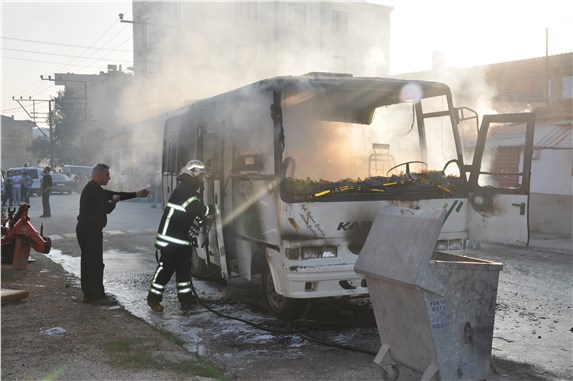 Olay, Karacabey'in Mecidiye Mahallesi Karacaahmet Caddesi'nde meydana geldi. Tarım işçilerini taşıyan Arif Aybey (59) yönetimindeki 16 TN 709 plakalı otobüs seyir halindeyken aniden motor bölümünden alev aldı. Alev topuna dönen aracın şoförü Arif Aybey, hemen araçtan inerek kendini son anda kurtardı. Önce kendi imkanlarıyla yangını söndürmeye çalışan sürücü, daha sonra itfaiye ekiplerine haber verdi. İtfaiye ekiplerinin müdahalesiyle araçtaki yangın kısa sürede söndürüldü. Gökyüzünü kaplayan duman çevrede paniğe neden oldu. Hurdaya dönen araç kullanılamaz hale gelirken, ölen ya da yaralananın olmaması rahat nefes aldırdı.