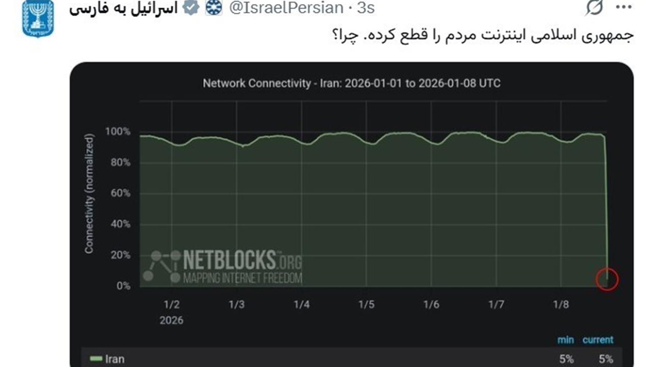 İran'da para biriminin rekor düzeyde değer kaybetmesi sonucunda 28 Aralık'ta başlayan protestolar, İsrail tarafından da desteklendi. Farsça paylaşımda, protestoların sürdüğü şehirler belirtilerek destek vurgusu yapıldı. Bununla birlikte, İran'daki internet kesintisine dair bir grafik ile "İran halkın internet erişimini kesti. Neden?" mesajı paylaşımda yer aldı. Bu durum, İsrail basınında, İsrail hükümetinin İran'daki protestolara karşı daha aktif bir tutum sergilemeye başladığı şeklinde yorumlandı.