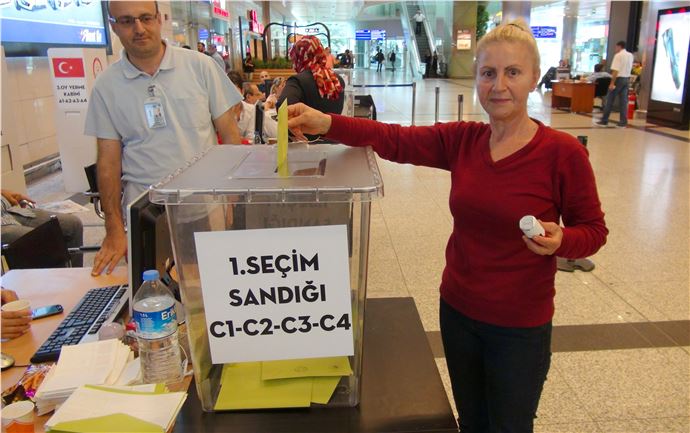 İstanbul Atatürk Havalimanı'nda, yurt dışı seçmen kütüğüne kayıtlı vatandaşlar, 7 Haziran seçimleri için oy verme işlemlerine 8 Mayıs'ta başladı. 20 gün içerisinde yaklaşık 21 bin oy kullanıldığı bildirildi. Oy verme süreci seçim günü olan 7 Haziran'a kadar devam edecek. Gurbetçiler, gümrük kapılarında 7 gün 24 saat oy kullanma imkânına sahip. Türkiye genelinde 53 milyon 765 bin 231 seçmen yurt içinde oy kullanacakken, yurt dışında 2 milyon 867 bin 658 seçmenin oy verme işlemi sürüyor.