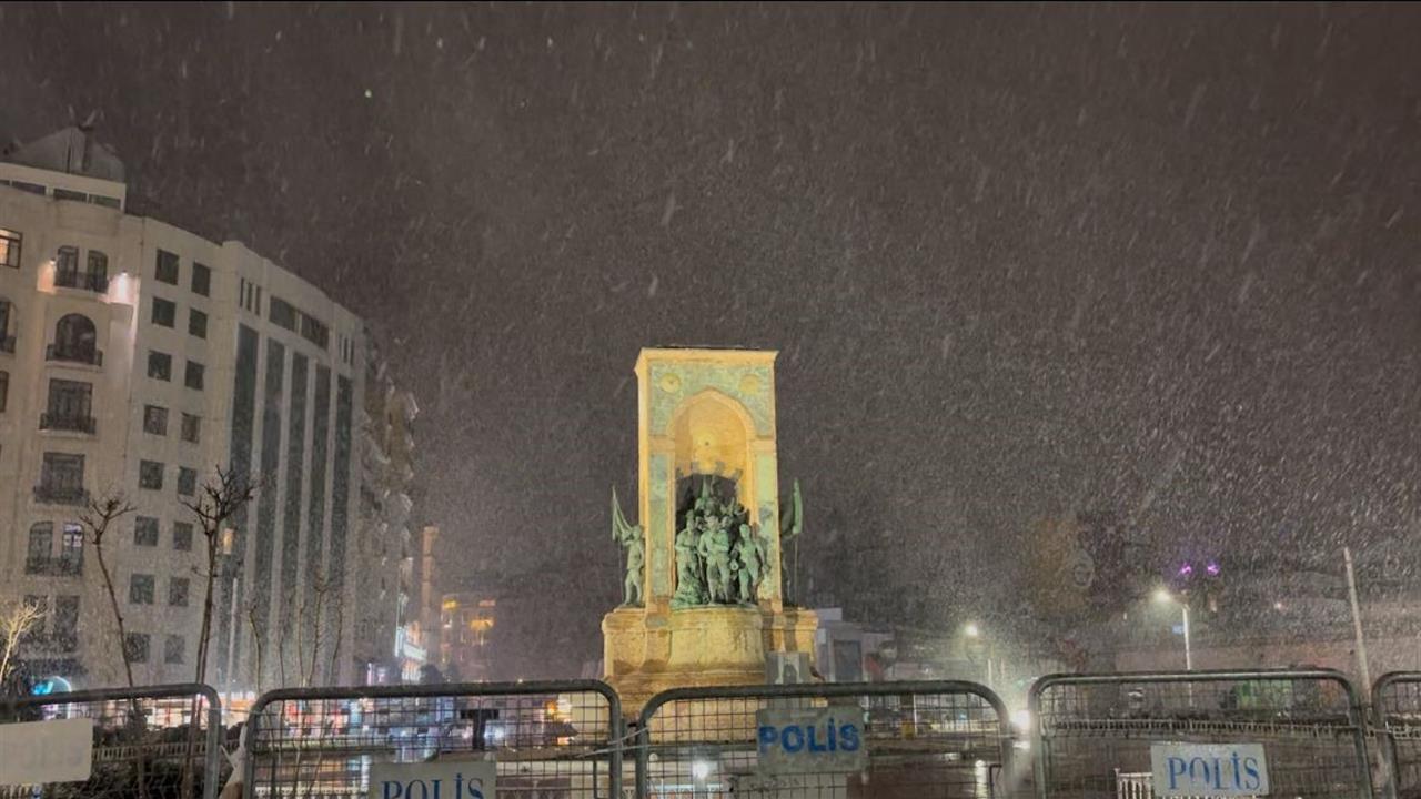 İstanbul’un Taksim Meydanı, gece saatlerinde başlayan kar yağışı ile beyaza büründü. Meteoroloji Genel Müdürlüğü'nün tahminlerine dayanan bu yağış, İstanbul'un birçok bölgesinde etkili oldu. Bu durum, özellikle Taksim'de yoğun bir şekilde hissedildi. Yoldan geçen vatandaşlar, kar yağışının etkisiyle yollarına devam ederken yanlarında taşıdıkları şemsiyeleri açmayı tercih ettiler. Bu anlar, hem yerli hem de yabancı turistler için görsel bir şölen oluşturdu. Taksim Meydanı'nda, kar yağışının keyfini çıkaran bazı kişiler, anı ölümsüzleştirmek için fotoğraf çekmeyi ihmal etmedi. Ortaya çıkan manzaralar, adeta bir kış kartpostalı gibi görünüyor.