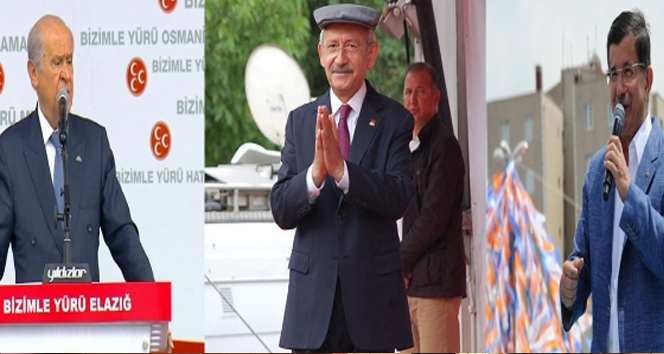 Seçim sürecinin son günlerine yaklaşırken, siyasi liderler mitinglerine hız kesmeden devam ediyor. Başbakan Ahmet Davutoğlu, İstanbul'un çeşitli ilçelerinde halkla bir araya gelirken, CHP Genel Başkanı Kemal Kılıçdaroğlu Adıyaman ve İstanbul Sultangazi'de mitingler gerçekleştirdi. MHP lideri Devlet Bahçeli ise Elazığ'da partililerine hitap etti.
