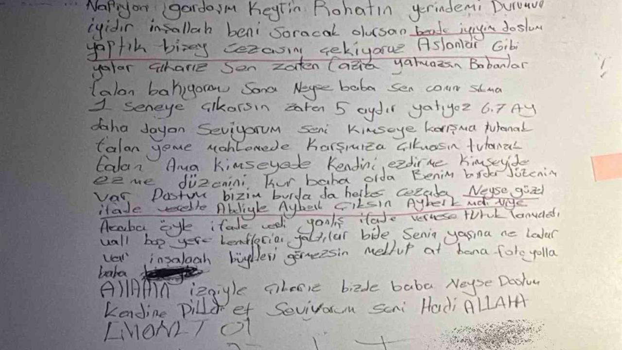 B.B.'nin mektubunda, "Napıyon gardaşım, keyfin rahatın yerinde mi? Durumun iyidir inşallah. Beni soracak olursan iyiyim, yaptık bir şey cezasını çekiyoruz. Aslanlar gibi yatar çıkarız. Sen zaten fazla yatmazsın" ifadeleri yer aldı. Ayrıca, "Babanlar sana bakıyor mu? Neyse baba sen canını sıkma, 1 seneye çıkarsın. Zaten 5 aydır yatıyoruz. 6-7 ay daha dayan" şeklinde de yazdığı belirtiliyor.