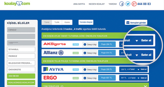 Online sigorta broker’ı Koalay.com’un sağladığı verilere göre, araç sahipleri trafik sigortası ve kasko poliçeleri tekliflerini karşılaştırarak önemli fiyat avantajları yakalayabiliyor. Trafik sigortası, araçları olası kazalara karşı korurken, kasko sigortası da maddi kayıpları minimize ediyor. Sigorta fiyatları aracın özelliklerine ve sigorta şirketine göre değişiklik gösteriyor.