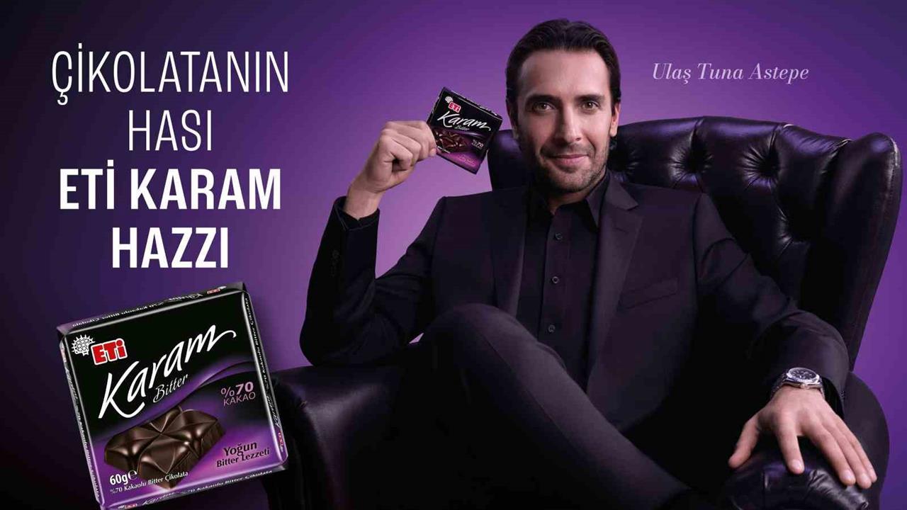 Bitter çikolata alanında tanınan markalardan biri olan ETİ Karam, yeni reklam filmini duyurdu. Bu reklamda Ulaş Tuna Astepe, meşhur Karam koltuğuna oturarak yönetmenin gereksiz olduğunu keşfediyor. Çünkü sahnenin gerçek yöneticisi, ETİ Karam’ın kendisi oluyor. ETİ Karam, oyuncuyu sahnede yönlendirirken izleyicilere alışılmışın dışında, çarpıcı bir anlatım sunmayı başarıyor. Reklamın sonunda Astepe, "Çikolatanın hası, ETİ Karam hazzı" ifadesini kullanıyor.