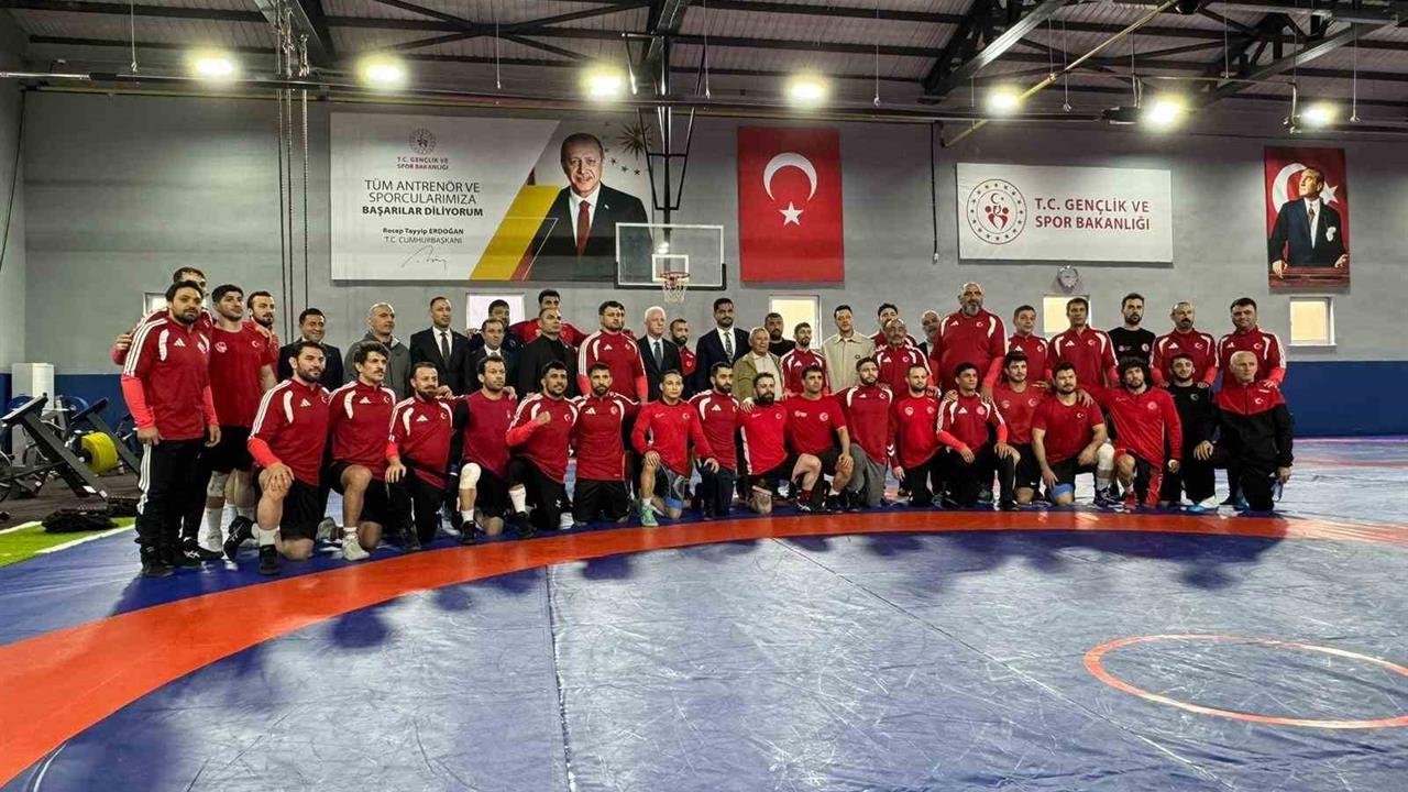İstanbul Valisi Davut Gül, Arnavutluk'ta 20-26 Nisan tarihlerinde gerçekleştirilecek olan 2026 Avrupa Güreş Şampiyonası öncesinde, Sarıyer Kamp Eğitim Merkezi'nde bulunan Grekoromen Milli Takımı'nı ziyaret etti. Ziyaret sırasında Türkiye Güreş Federasyonu Başkanı Taha Akgül, yöneticiler ve eski futbolcu Mesut Özil de hazır bulundu.