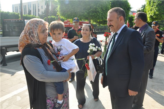 ADANA - İtfaiye Haftası kutlamaları kapsamında Adana Büyükşehir Belediyesi İtfaiye Daire Başkanlığı’nca çeşitli etkinlikler düzenlendi. İtfaiye Daire Başkanı Mustafa Akyıl, itfaiye müdürleri, yöneticileri ve personel, Atatürk Parkı’ndaki Atatürk Anıtı’na çelenk koydu. Atatürk Parkı’nda, kent halkının olası yangınlara karşı farkındalığını artırıp, bilinçlenmesini sağlayacak broşür dağıtımı için stant açıldı. Benzer stantlar kentin farklı noktalarında da bilgilendirme çalışması için kuruldu. Adanalılara çiçek, kalem, bayrak, çocuklara itfaiye aracı hediye edildi. Adana Büyükşehir Belediyesi İtfaiye Daire Başkanı Mustafa Akyıl ve itfaiye yöneticileri, Vali Mustafa Büyük ile sivil erkandan bazı isimleri ziyaret etti.